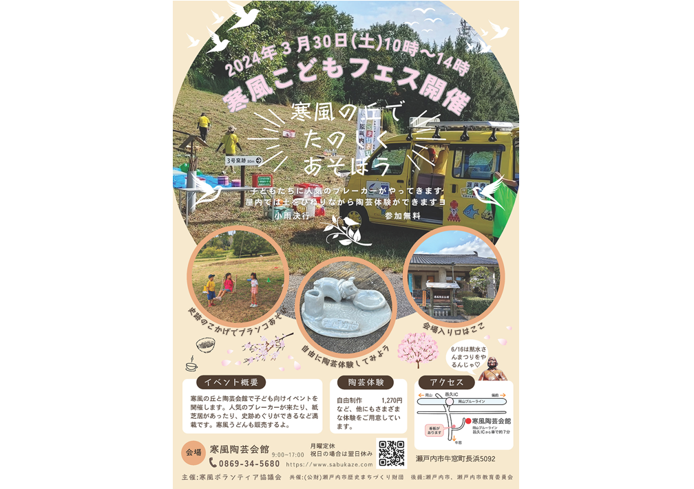 寒風の丘と寒風陶芸会館で子ども向けイベントを開催します。