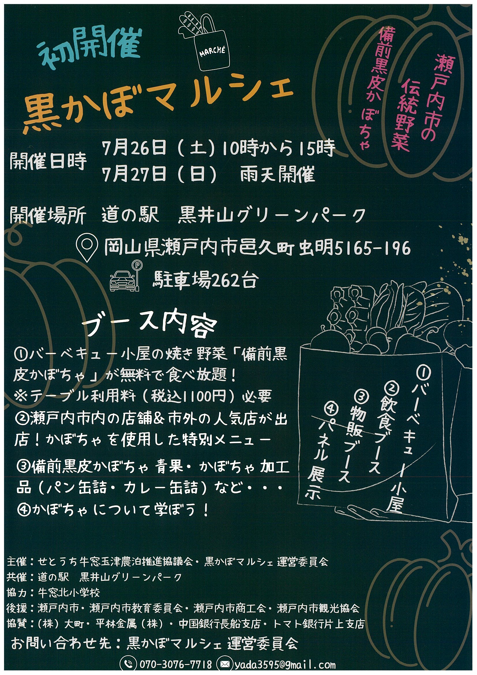 | 電話番号 | 070-3076-7718(黒かぼマルシェ運営委員会) |